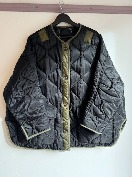 Frankie Shop Black with Khaki Trim Qulited Collarless LinerRegular price £145.00 GBPRegular priceUnit price / per-