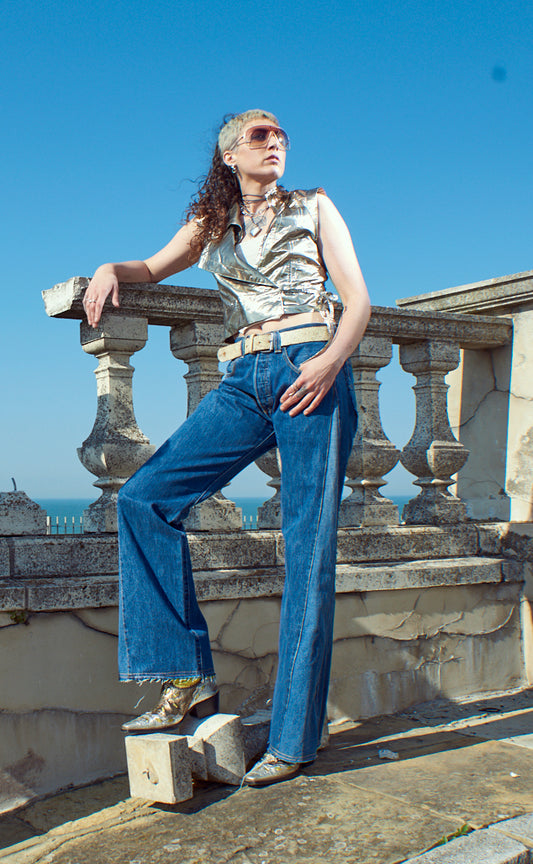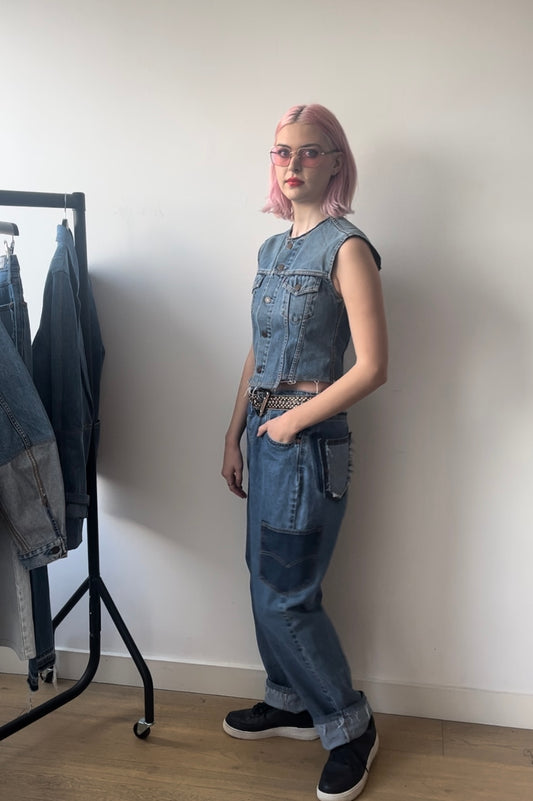 Beau Wrangler Mid Wash Oversized Reverse Panel Boxy Jacket
