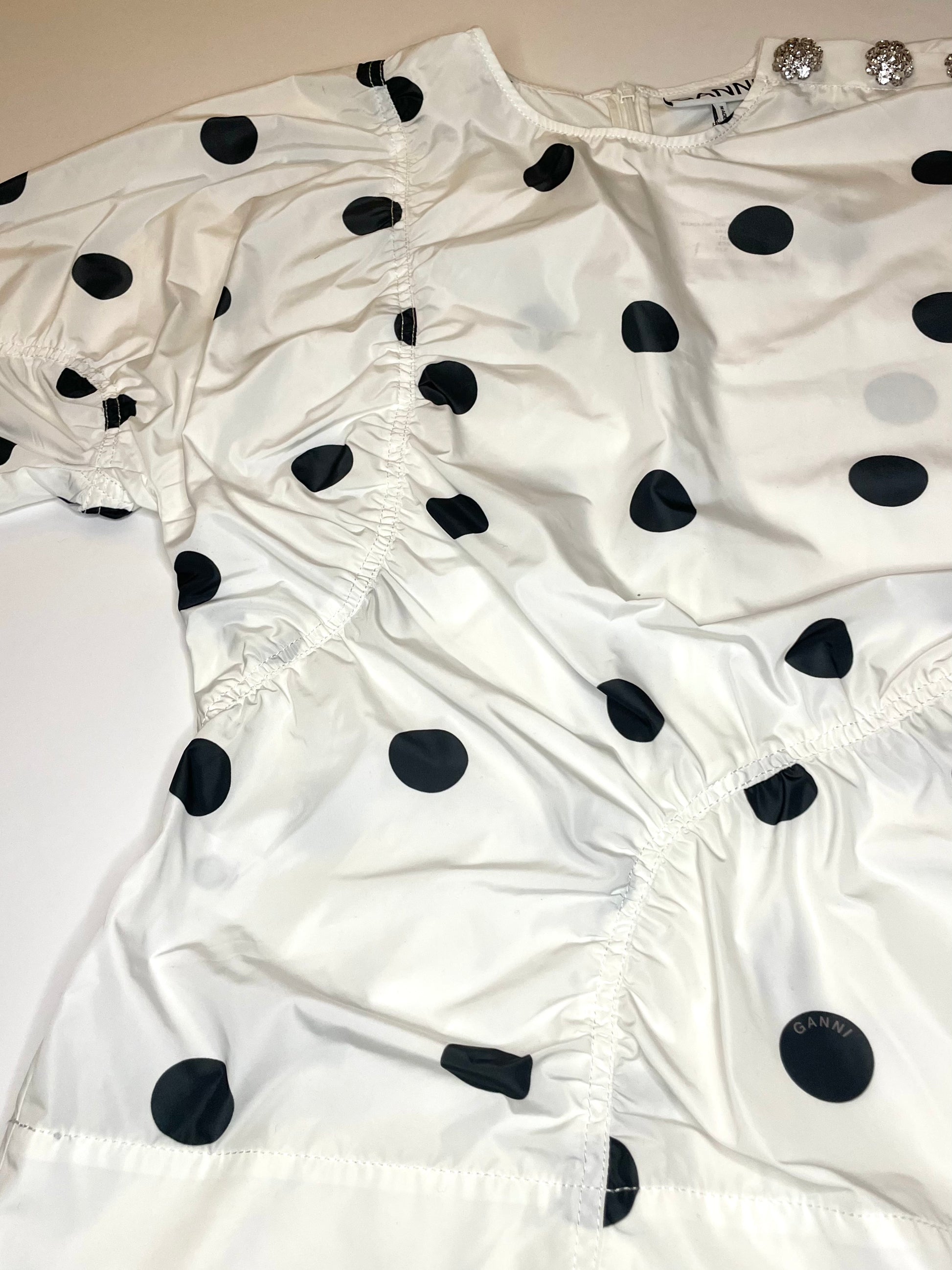Ganni Black and White Spot Print Top with Crystal Buttons