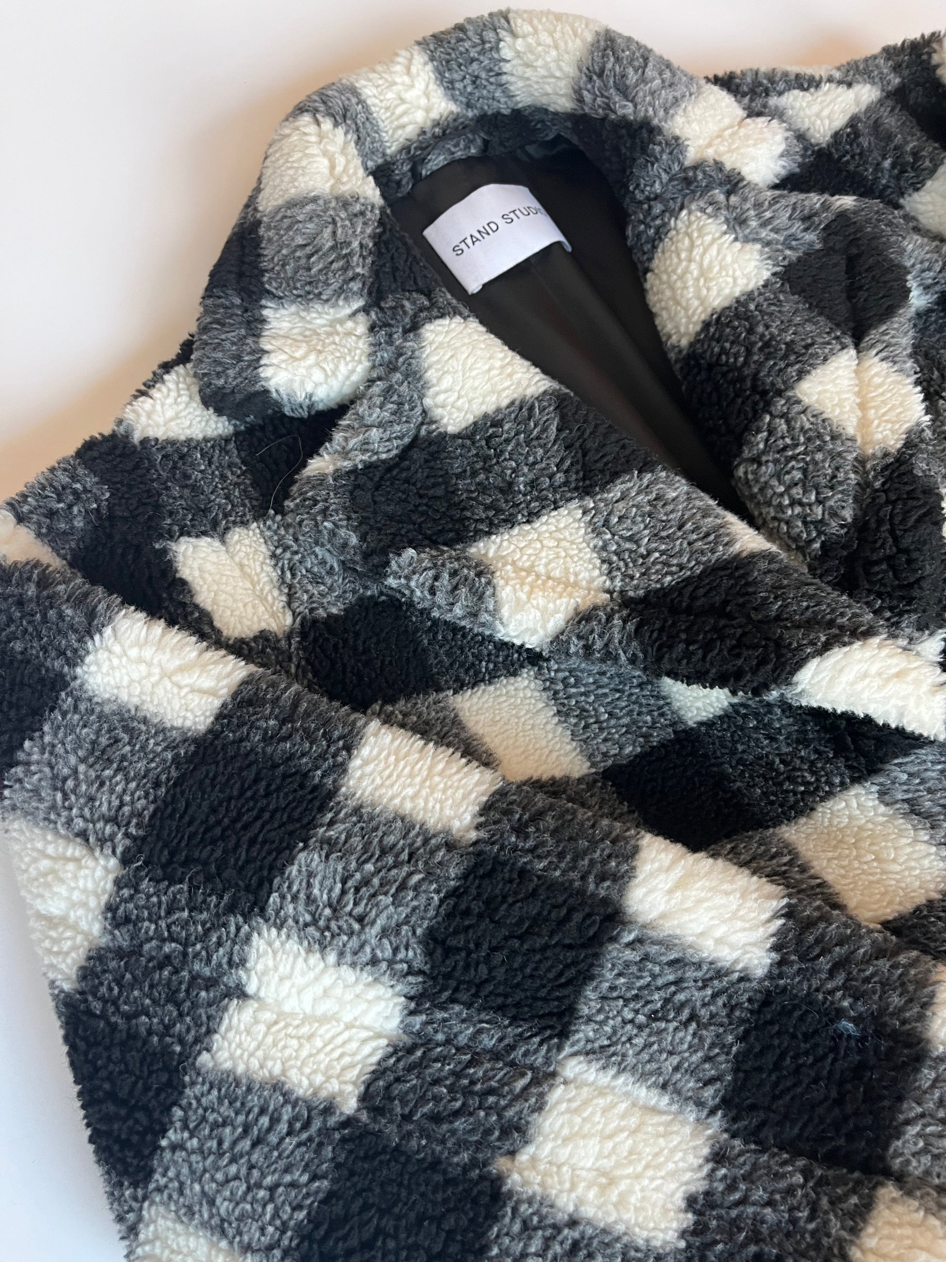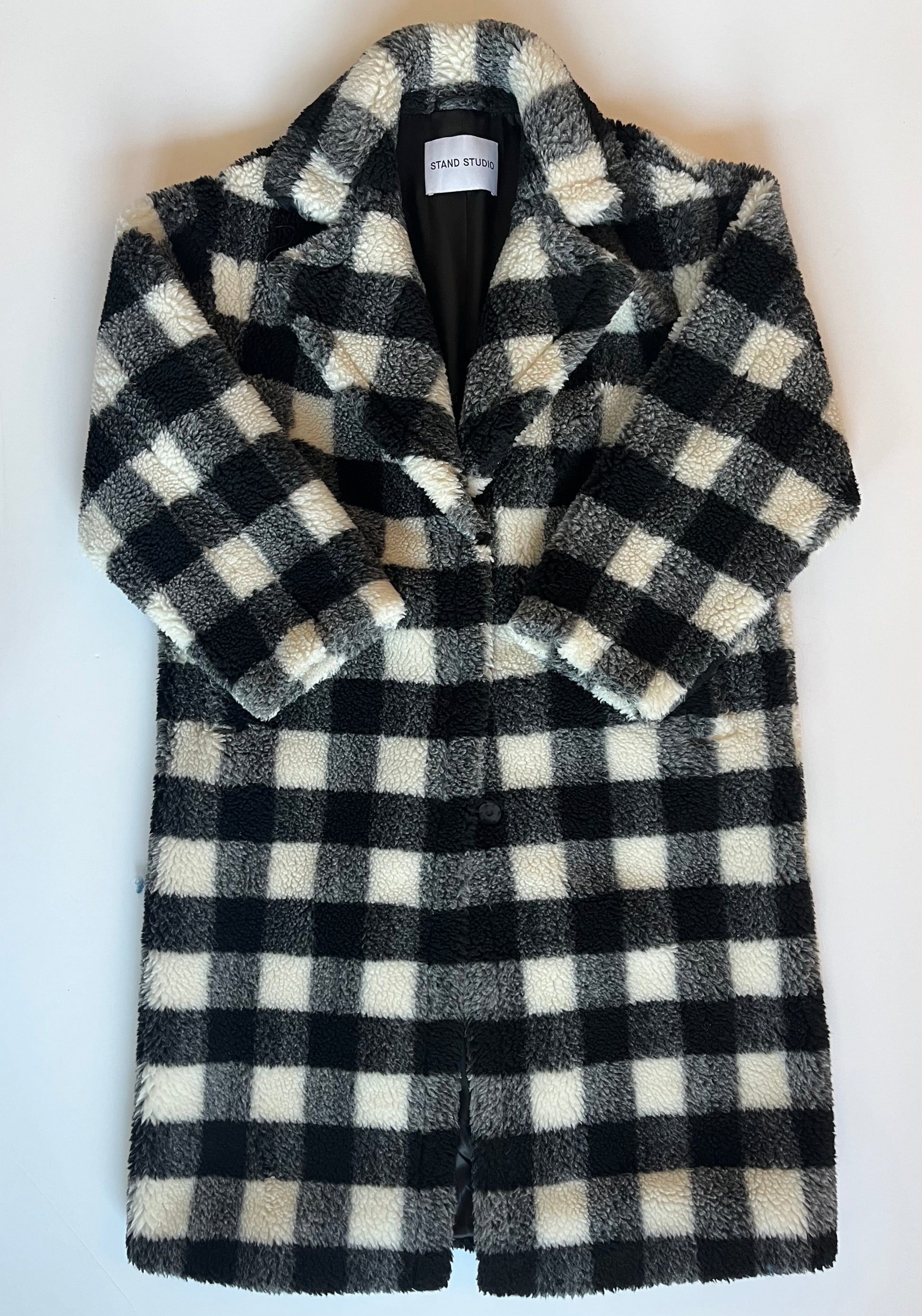 Stand Studio Black and White Teddy Long Faux Fur Coat